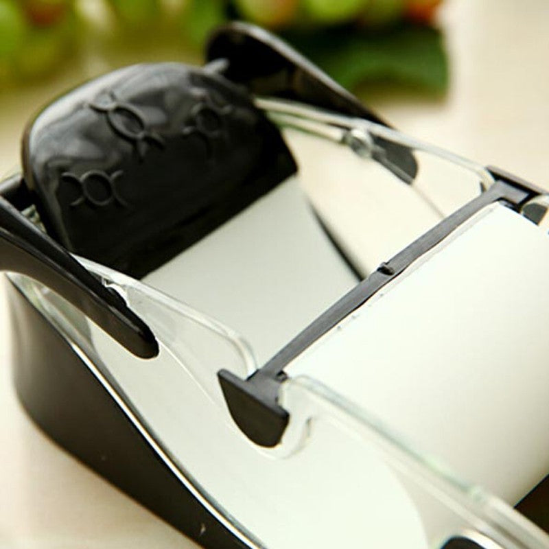 2.Așezați rola pe o zonă plană, cu pârghia îndreptată spre dvs. Așezați frunza pe banda și trageți puțin înapoi cu degetele.
